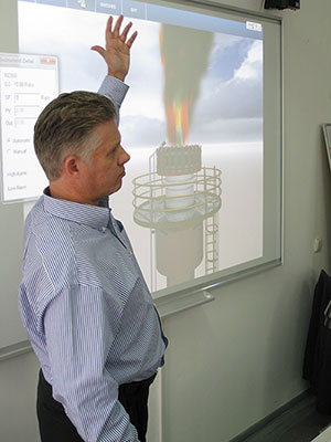 In the first phase of this project, we delivered 21 modules, ranging from simple demonstration modules of several types of valves, to more comprehensive modules containing simulators, like the Vent and Flare system, demonstrated in this photo by ExplainMedia's president Wilco Sas.